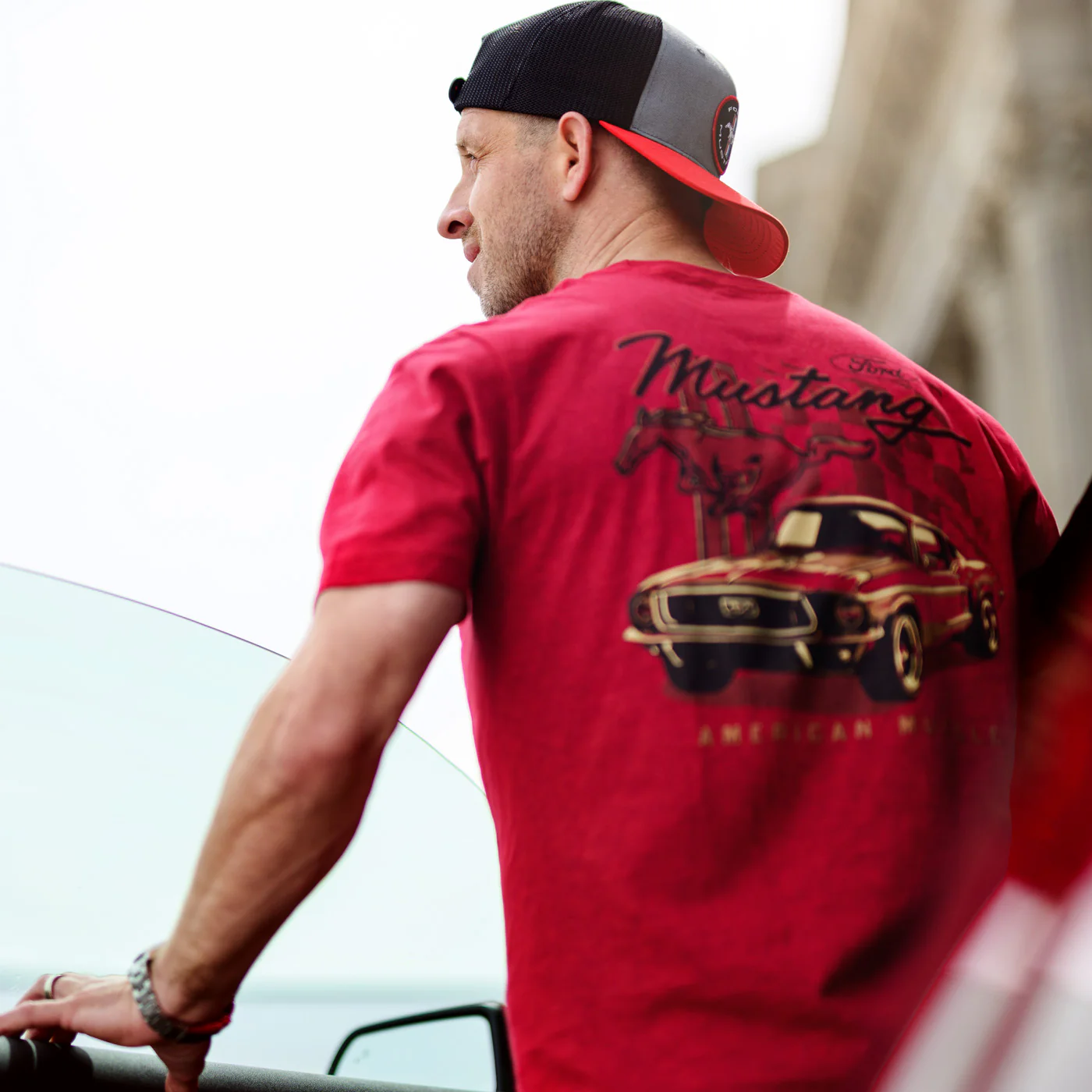 Ford Mustang Mens Red American Muscle Graphic T-Shirt