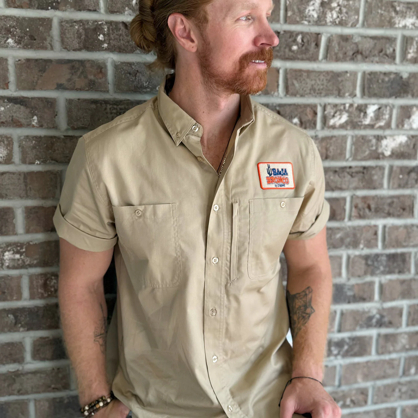 Ford Baja Bronco Stroppe Mens Button Pocket Khaki Mechanic Shirt