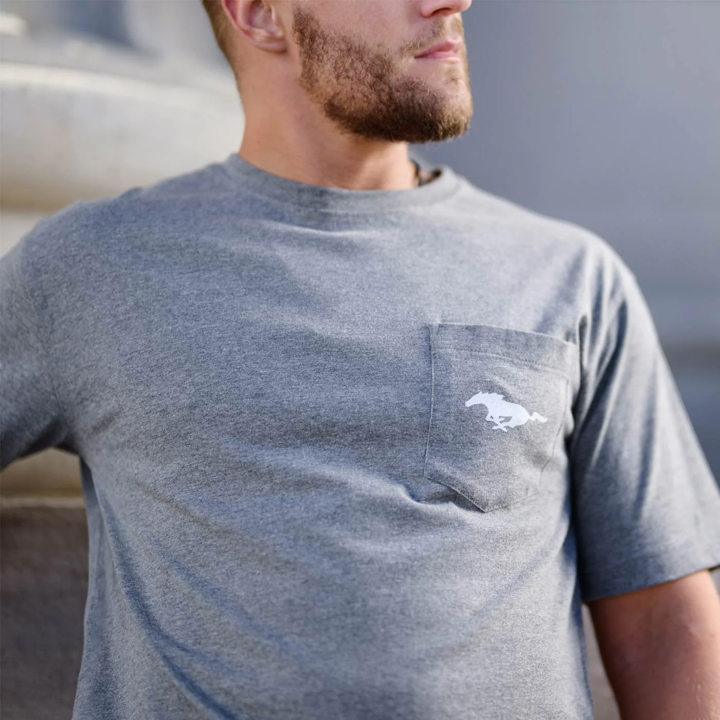Ford Mustang Mens Tribar Logo Gray Pocket T-Shirt