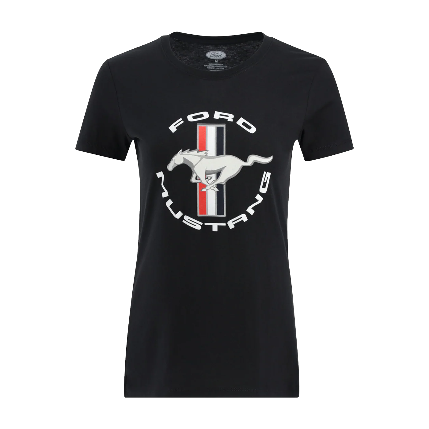 Classic Mustang heritage meets everyday comfort in this relaxed-fit Ford Mustang womens t-shirt. Featuring the iconic Ford Mustang Tribar logo centered on the chest, this shirt brings bold performance styling to a laid-back silhouette. Crafted from a soft 60% cotton, 40% polyester CVC jersey blend, it delivers lightweight comfort with just the right amount of structure. A women's t-shirt fueled by Mustang.