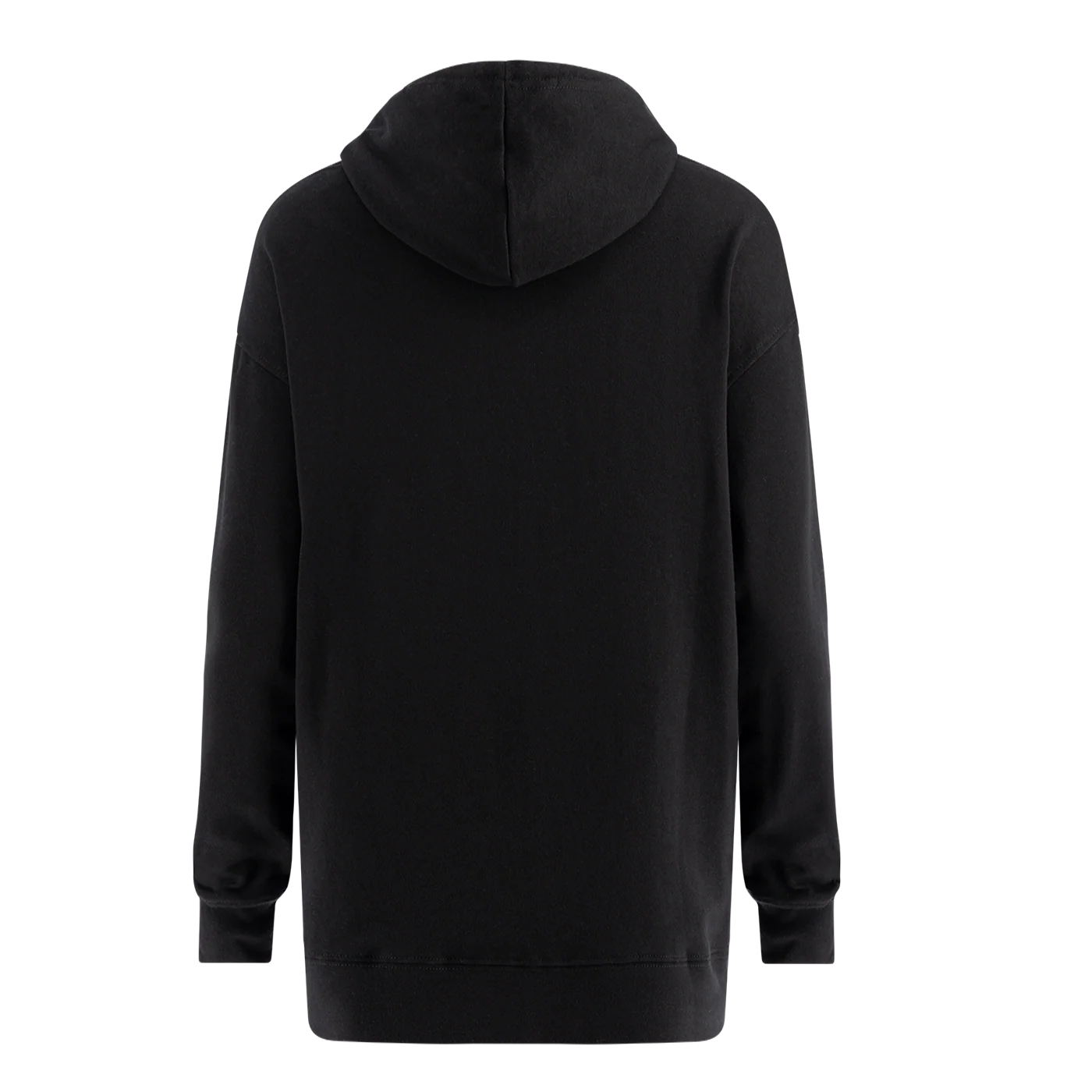 This Ford womens hoodie features a comfy oversized fit, perfect for lounging and everyday wear. The dark black color allows the foiled blue Ford Script to pop on the front chest. This hoodie was made from a blend of 70% cotton and 30% polyester fabric, ensuring warmth and stretch. Its heavyweight fleece fabric ensures a soft feel. The tagless neck label offers smooth comfort. This sweatshirt is detailed with braided draw cords and metal aglets. The front pocket is perfect for carrying your phone or keys. Wear Ford wherever the road takes you with this oversized sweatshirt.