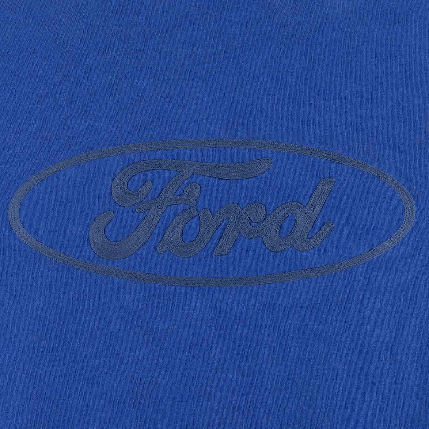 Stay comfortable in the Ford x Brixton Number One Fleece Crewneck Sweatshirt, perfect whether you're by the beach or behind the wheel. Made from medium-weight recycled fleece (300 GSM) with 77% cotton and 23% recycled polyester, it features classic center-front chain-stitch embroidery, a cool embroidered sleeve detail, and a side-seam label for a timeless look and cozy feel. This is your next cool blue crewneck.